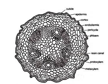epidermis is heavily cuticularized and followed by multilayered cortex.